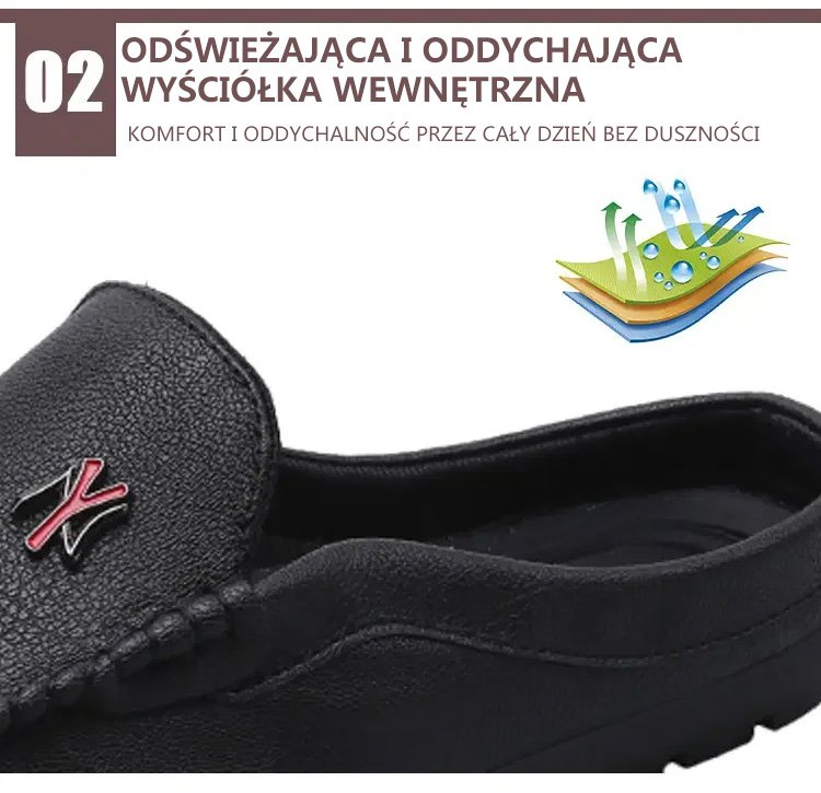 JS--Pół pantofel z oddychającej skóry bez obcasa