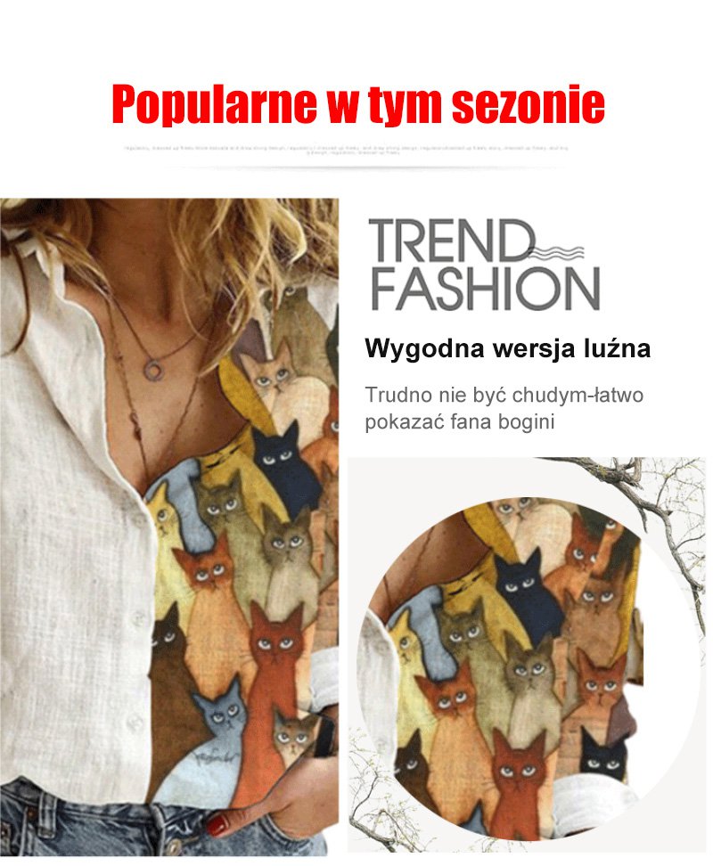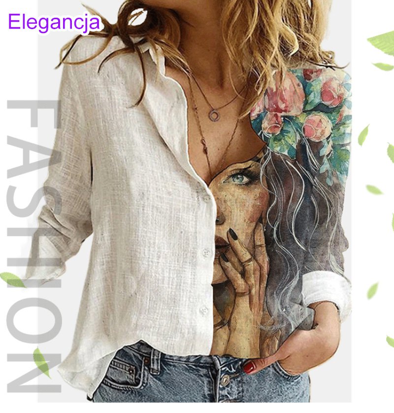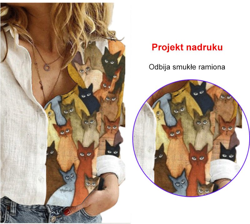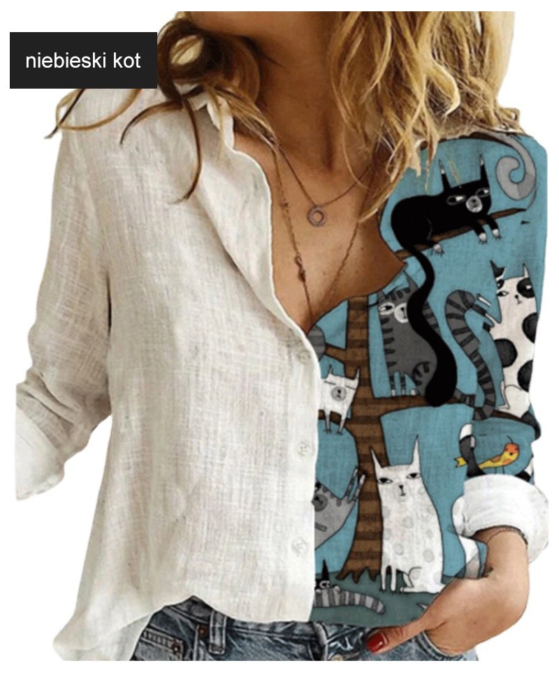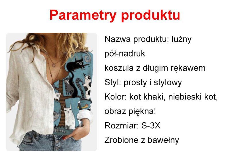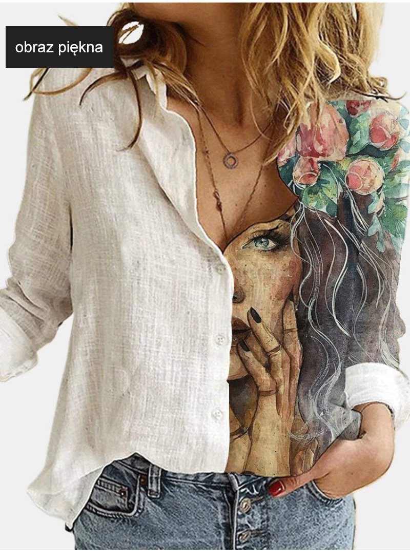 Luźna koszula z długimi rękawami, pół-nadruk